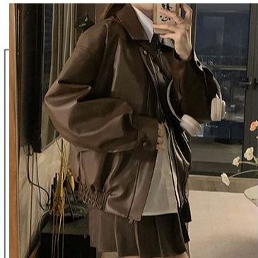 襟のデザインが特徴的なレザージャケットのブルゾンです。